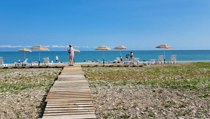Находясь на первой береговой линии парк-отель «Черноморец» позволяет гостям оказаться на чистом, живописном пляже, не покидая его территории. Наличие необходимого пляжного оборудования обеспечивает комфортное пребывание на берегу моря. Пляж оснащен раздевалками, шезлонгами, зонтиками и покрыт галькой мелких и средних размеров.