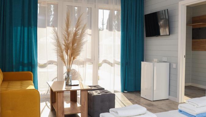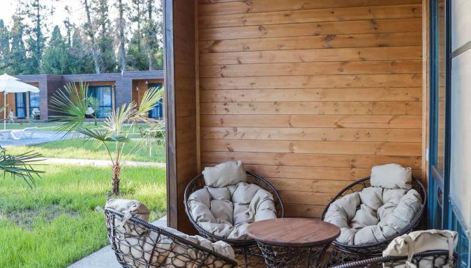 400 метров от моря! Большой детский и взрослый БАССЕЙН с подогревом! Отдельные коттеджи, одно и двухкомнатные, с личной террасой!