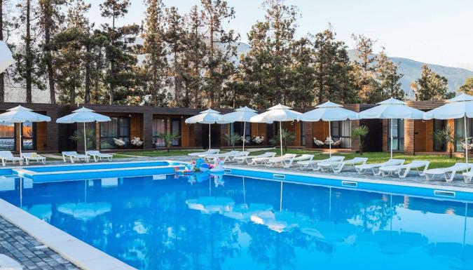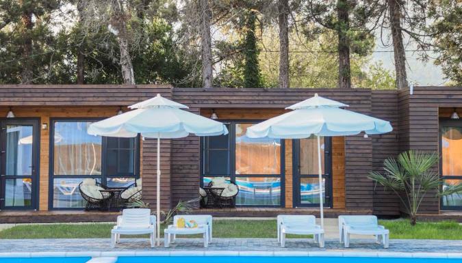 - Гагра, Алахадзе. База отдыха «POOLSIDE beach resort». Отдельные коттеджи, большой бассейн