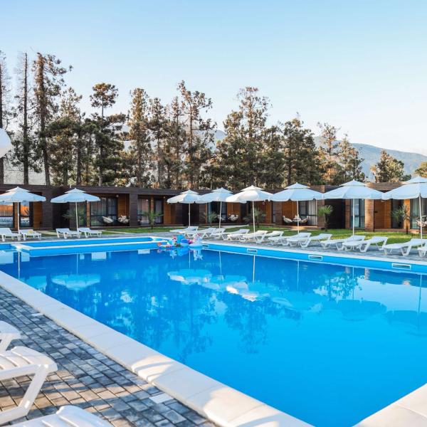 Гагра, Алахадзе. База отдыха «POOLSIDE beach resort». Отдельные коттеджи, большой бассейн