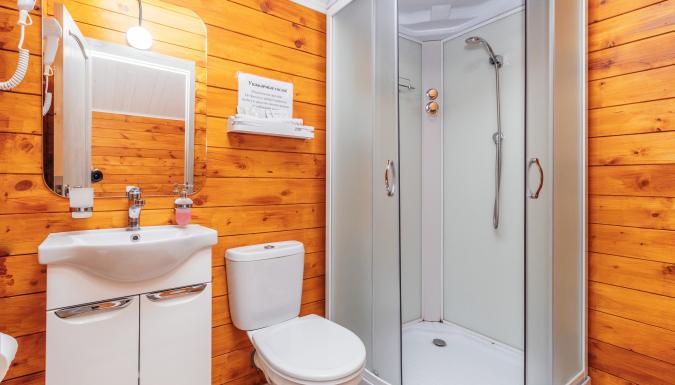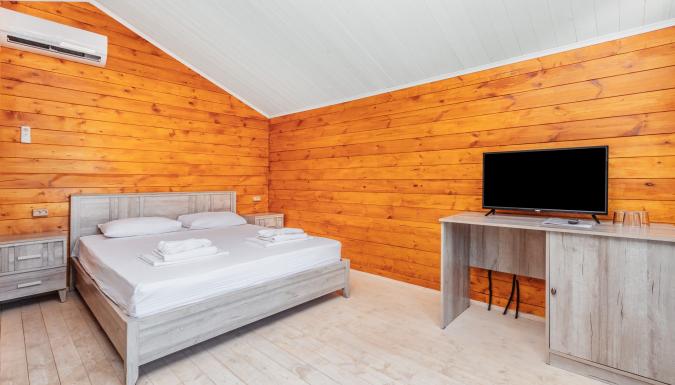 На территории отеля находятся 100 деревянных ШАЛЕ из сосны со всеми удобствами и отдельным входом,