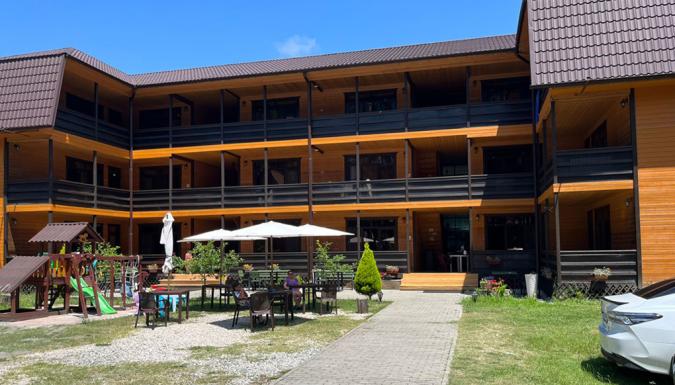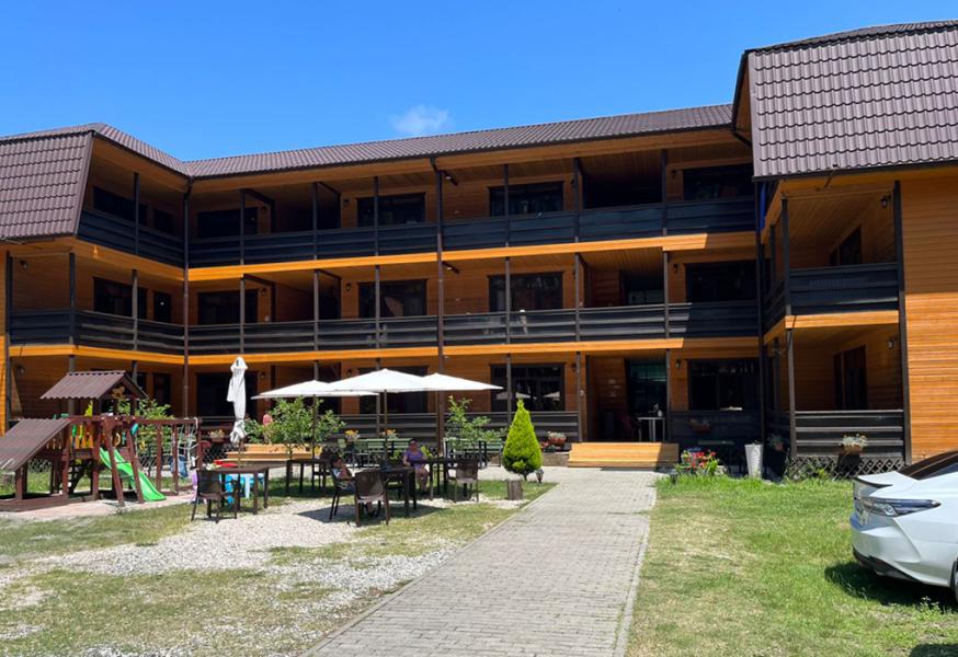 Отличные отзывы отдыхающих, территория комплекса огорожена и охраняется. Идеально подходит для отдыха с детьми, молодых и супружеских пар. До пляжа 500 м. (песчано-галечный пляж).