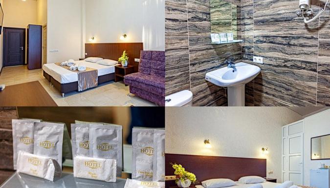 Номера со всеми удобствами: душ, туалет, кондиционер, холодильник, телевизор, фен. Номер однокомнатный, под запрос есть 5-и местный номер 2-х комнатный.