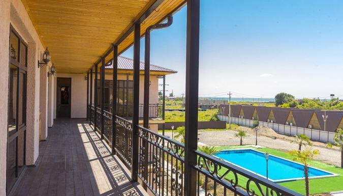 Об отеле: Отель расположен в курортном абхазском селе Алахадзы рядом с городом Гагра. В селе работает несколько кафе и продуктовых магазинов, в 15 минутах езды находятся железнодорожный вокзал и главные туристические заведения и места Гагры: дельфинарий, современная бальнеолечебница, парк аттракционов, аквапарк.