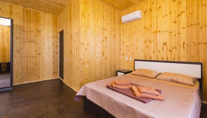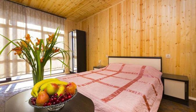 Трехэтажное современное здание. Для проживания гостей предлагаются уютные 2-х и 3-местные номера со всеми удобствами, а также коттедж, рассчитанный на 3 отдыхающих. Все номера оснащены душем, кондиционером, есть телевизор и холодильник, имеются открытые террасы, доступна сеть wi-fi.
