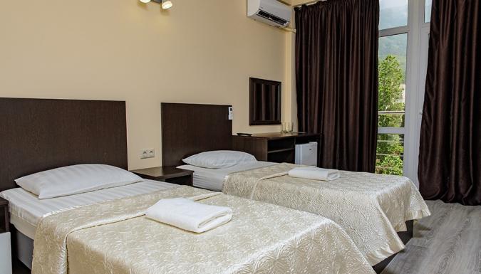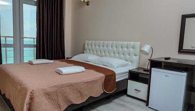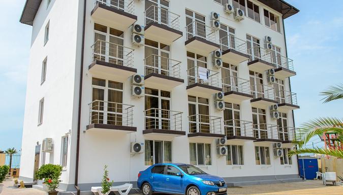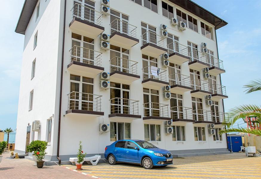 Новый и современный, уютный и комфортабельный отель в центре города Гагра. В шаговой доступности от моря( 30 м), на первой береговой линии.