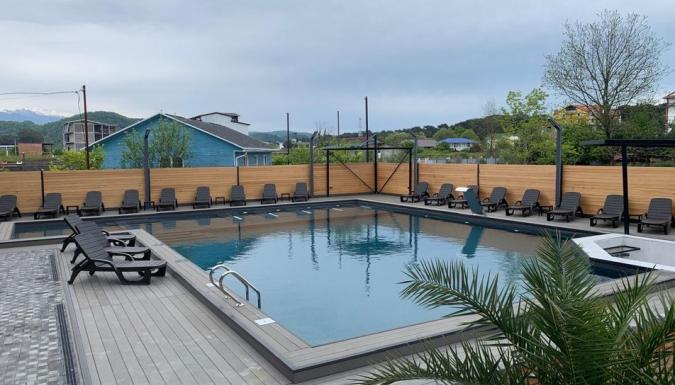 Номера 2-3-4 местные. На всей территории доступен беспородной интернет, для детей возле корпуса организована игровая площадка с качелями, есть открытый бассейн.