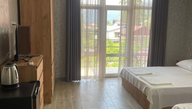 Гостевой дом «Дали» находится в центральной части г. Гагра в 450 м до берега Черного моря. В шаговой доступности от отеля находятся кафе, столовые, магазины, а также парк развлечений. На территории гостевого дома есть общая кухня для готовки, мангальная зона. Номера категории люкс. В номерах набор мебели, кондиционер, холодильник, санузел, балкон, чайник и небольшой набор посуды. Уборка по запросу.