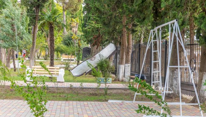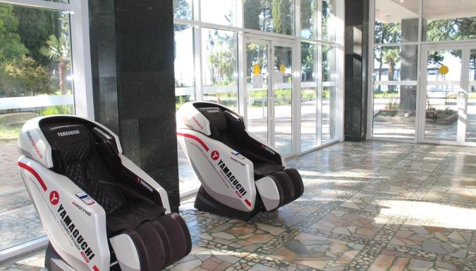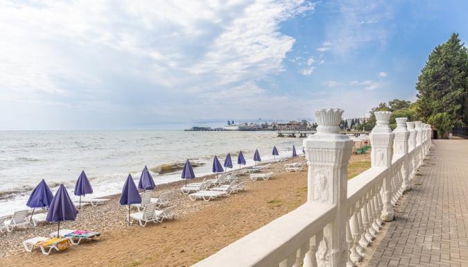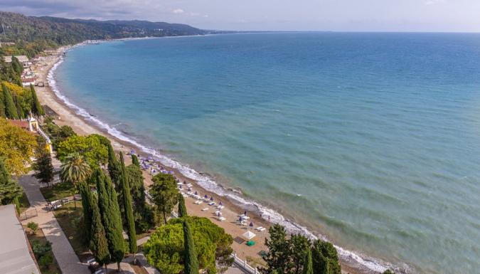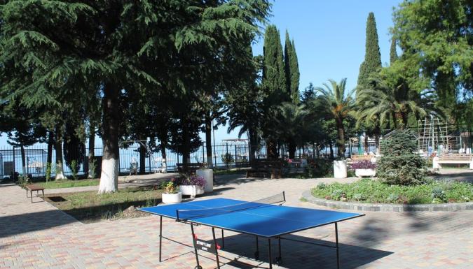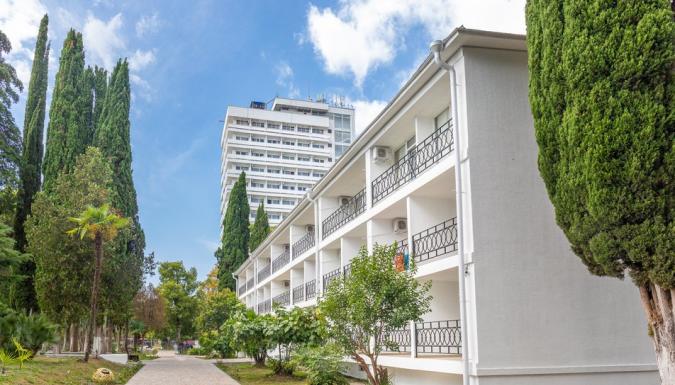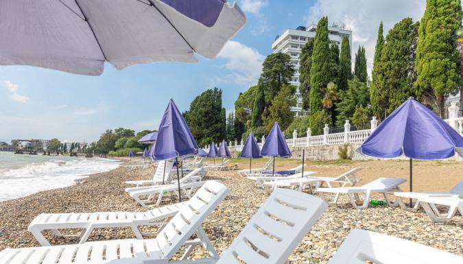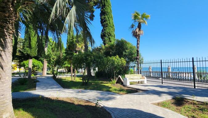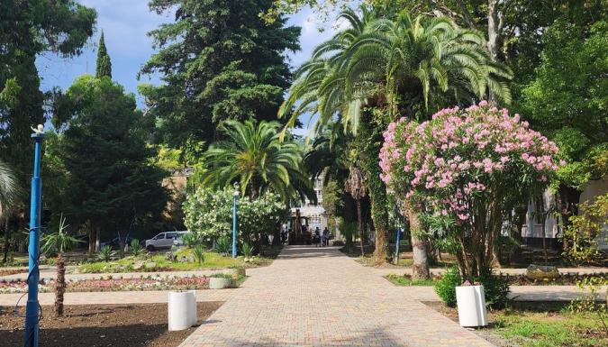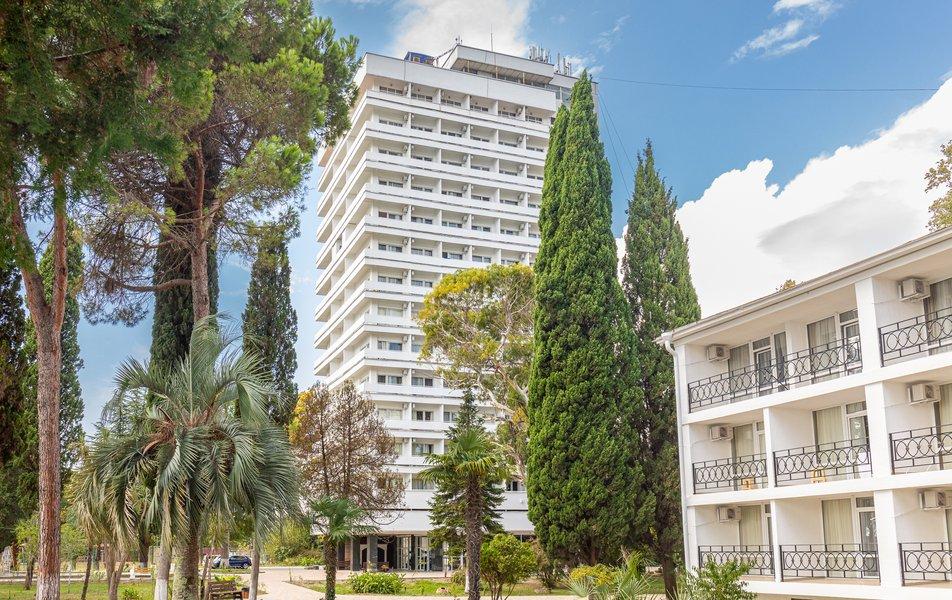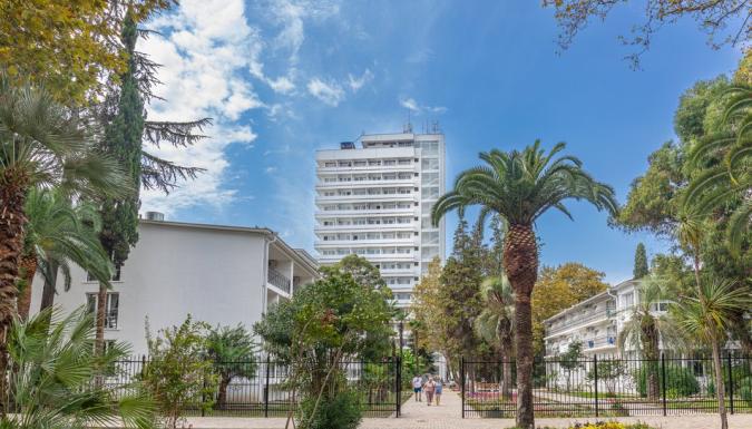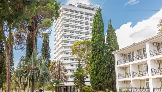 Территория отеля находится на первой береговой линии и занимает живописный парк с реликтовыми пальмами, кипарисами, эвкалиптами и прочими субтропическими растениями. Здесь располагаются прогулочные зоны, беседки и уютные уголки для отдыха.