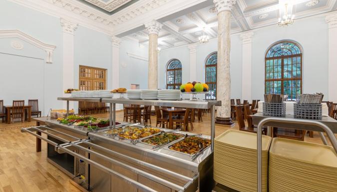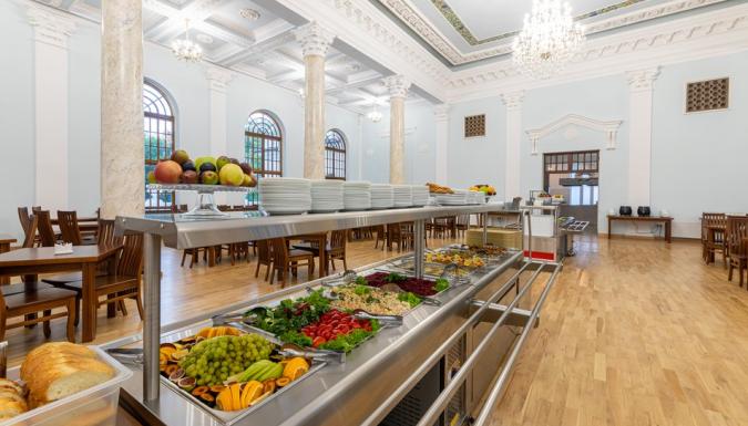 Питание организовано по системе "шведский стол" и включает в себя блюда европейской и кавказской кухонь. Столовая на территории «Страна Души» после глобальной реставрации. В период с 01.05.2026 по 31.10.2026 работают гриль-бары.