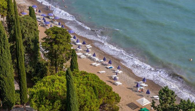 Общекурортный городской песчано-галечный пляж находится в 2 минутах ходьбы от отеля. В распоряжении гостей лежаки и зонты.