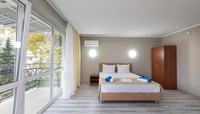 Для проживания обустроено 12 корпусов различной этажности, каждый с уникальным названием. Все номера отеля укомплектованы отдельными санузлами с душем, холодильником и телевизором. Часть номеров имеет балкон с живописным видом на горы, город или море.