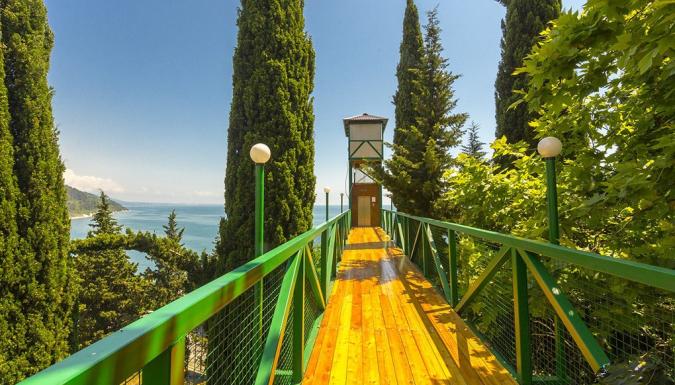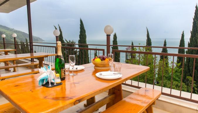 Пансионат «Багрипш» расположен на собственной охраняемой территории. Доехать до основной инфраструктуры города Гагры (городской рынок, магазины, кафе-рестораны национальной кухни, аквапарк) можно на такси всего за 15 минут. Идеален для комфортного семейного отдыха.