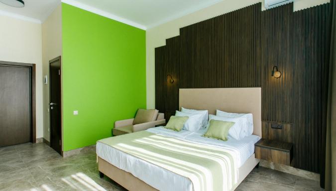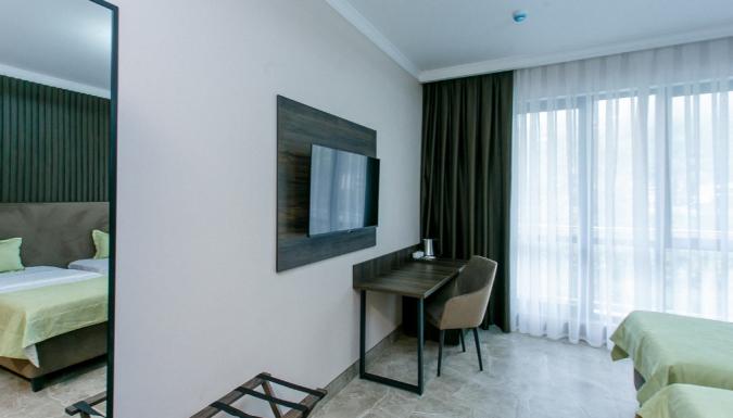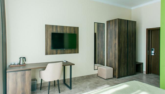 В номерах есть все, что потребуется для комфортного отдыха: кондиционер, холодильник, электрочайник, телевизор, собственная ванная комната с косметическими принадлежностями.