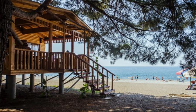 Частный пляж пансионата с песчано-галечным покрытием обеспечен кабинками для переодевания, лежаками и зонтами. На пляже есть площадка для пляжного волейбола..