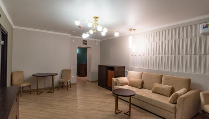 Питание гостей осуществляется трижды в день: по системе «шведский стол». В распоряжении гостей пансионата – открытый подогреваемый бассейн, возле которого расположены удобная релакс-зона и бар. Работают сауна, хамам, косметологический и массажный кабинеты. Любителям активного отдыха предлагаются пользование тренажерным залом и спортивными площадками для игры в баскетбол, волейбол, теннис, мини-футбол и настольный теннис.