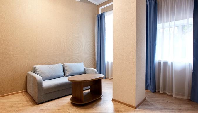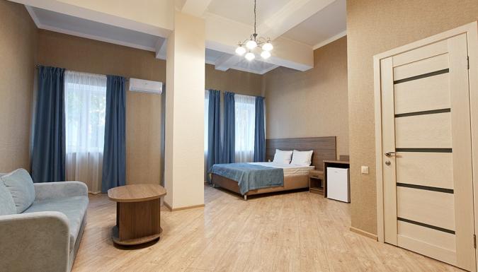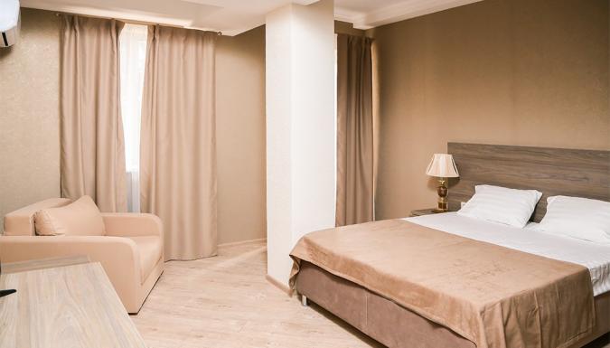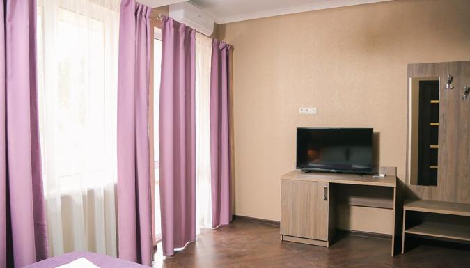Четырехэтажный корпус отеля занимает небольшую закрытую территорию. Гостей ожидают 39 номеров Стандарт, Полулюкс и Люкс. Номера оснащены душем, кондиционером, бытовой техникой — везде есть холодильник, телевизор, фен.