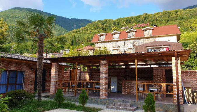 На курорте возможно приобретение экскурсионного обслуживания (большой выбор программ: озеро Рица, Сухум + Новый Афон, джиппинг тур, рафтинг, форелевое хозяйство, этнопарк, абхазское застолье и др.).
