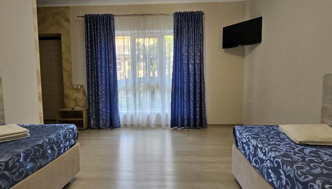 Отель представляет собой одно 5-этажное здание и предлагает гостям 34 номера разных категорий. В номерах есть все, что необходимо для комфортного отдыха: телевизор, кондиционер, холодильник, 2-спальная кровать, туалет, душ). На территории отеля есть бесплатный Wi-Fi, кафе, багажная комната, парковка охраняемая, утюг и гладильная доска.