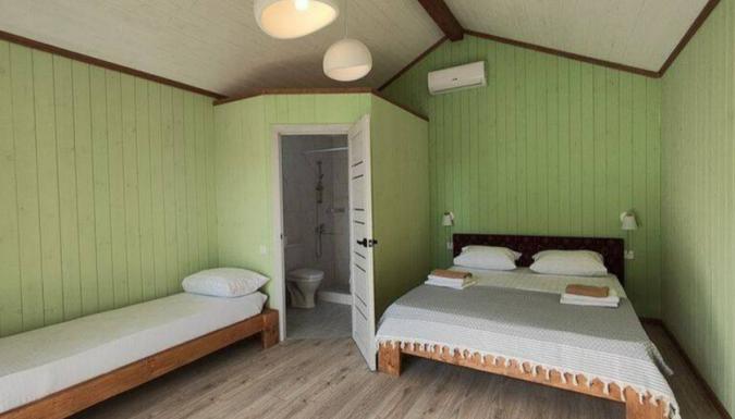 До пляжа 10 минут. Возможно размещение до 4 человек. Без питания. Есть кухня для самостоятельного приготовления пищи, бассейн и беседки с мангалом на территории.