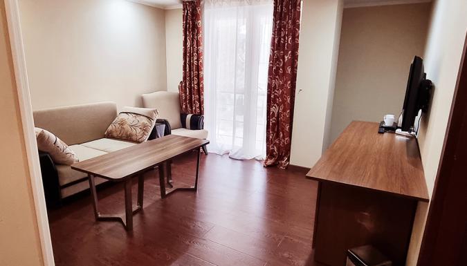 3-х этажный корпус отеля включает в себя 49 номеров различных категорий комфорта. Даже стандартные номера обладает достаточным уровнем сервиса, так как они оснащены современной мебелью, ЖК-телевизором, холодильником и кондиционером. В каждом номере предусмотрен санузел и душевая кабинка с современной сантехникой. В стоимость проживания входит пользование феном и бесплатной услугой Wi-Fi.