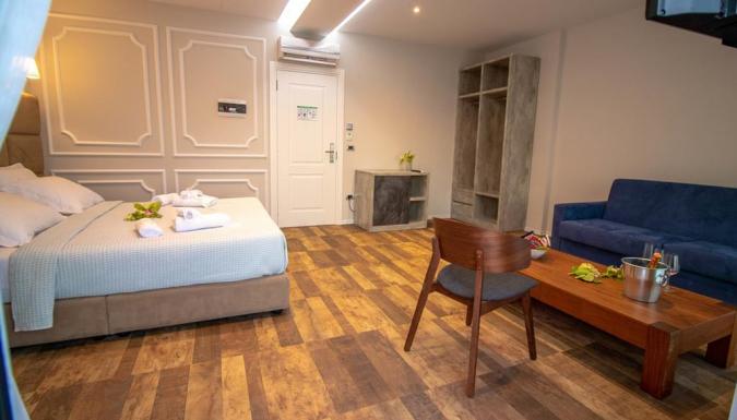 200 номеров в отеле и пляжные кресла. Комнаты оснащены всеми удобствами, в числе которых кондиционер, телефон, рабочий стол, ванная комната со всеми прилагающимися средствами (шампунь, биде, кондиционер для волос, душ, туалетная бумага, халат, туалет, собственная ванная комната, ванна), гардероб, диван-кровать, сушилка для одежды, раскладная кровать, корзины для мусора, вешалка для одежды, чистящие средства. Досуг гостей скрасит наличие телевизора с плоским экраном. В пользование гостям предоставляется холодильник. Из окон некоторых номеров открывается великолепный вид на сад, город, море, бассейн и горы.