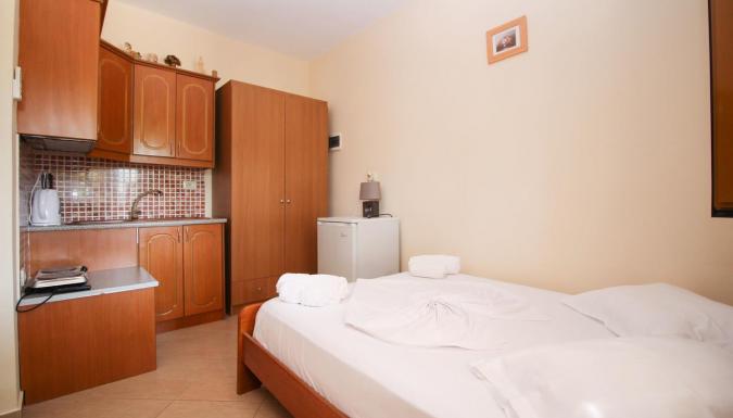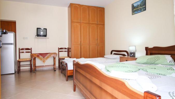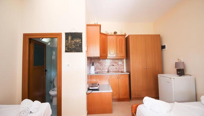 - Апартаменты расположены недалёко от пляжа и магазина, рядом несколько пиццерий, таверны