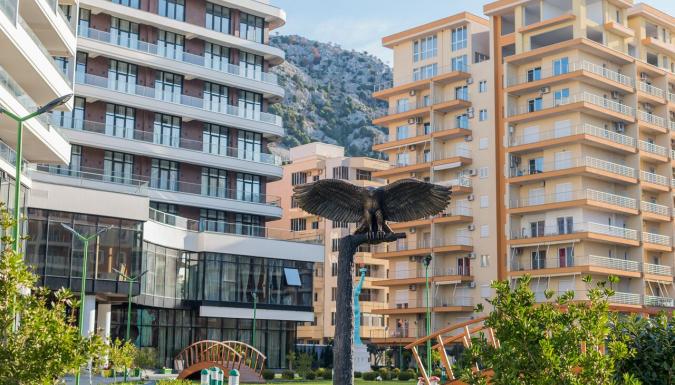Комплекс расположен в 1 км от центра города Шенджин и в 58 км от международного аэропорта Тираны имени матери Терезы. Город Шенджин- это прибрежный город в северо-западной части страны, славится чистейшим белым песком на пляжах. Всего в 7 км от курорта находится город Лежа, где в настоящее время открыт Мемориал национального героя Скандербега, а также в 2-х км от города расположился монастырь Св. Антония, построенный в 1240 году.