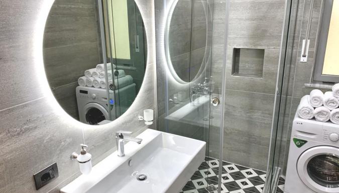 Апартаменты расположены в районе с развитой инфраструктурой, в шаговой доступности есть множество магазинов, кафе и ресторанов.