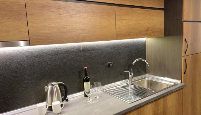 - полностью оборудованная кухня с современной техникой (холодильник, плита с духовкой, электрочайник, стиральная машина и пр.), посудой, принадлежностями для приготовления пищи и обеденной зоной,