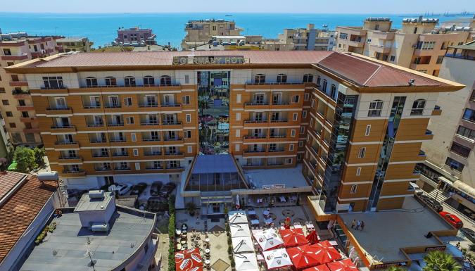 четырехзвездочный, ухоженный и элегантный, передан для эксплуатации в 2016 г., 125 номеров, 1 здание, 7 этажей, 3 лифта, большое, элегантное лобби, круглосуточный ресепшен, ресторан - питание шведский стол, албанская и интернациональная кухни, предусмотрены детские кресла, бар; паркинг; за отдельную плату: обслуживание в номерах, прачечная и утюжение; бесплатный беспроводной Интернет в лобби; принимаются кредитнеы карточки: Visa, MasterCard.