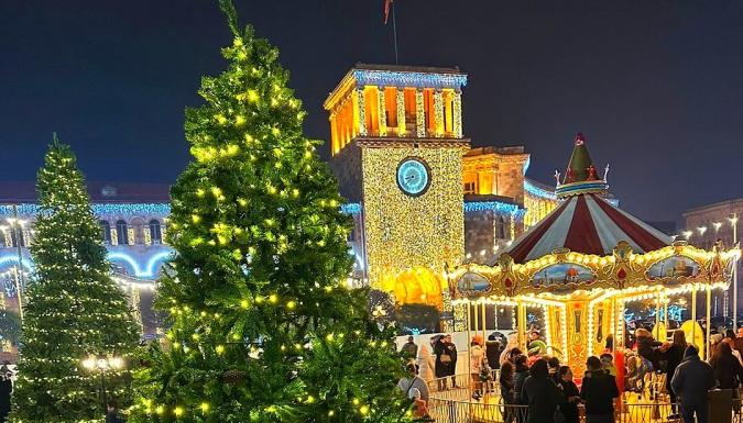 В этот день вы сможете поближе познакомиться с Ереваном. Город с древней историей в новогодние праздники превращается в нарядную европейскую столицу и предлагает множество развлечений на любой вкус. Центр ежегодных новогодних и рождественских гуляний располагается на площади Республики, у оперного театра и прилегающих к ним улицах (Туманяна, Абовяна, Налбандяна, а также проспект Месропа Маштоца).