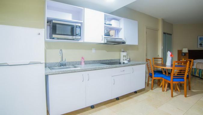 Studio: в номере – спальня с гостевой зоной, полностью оборудованная кухня, ванная комната. В спальне – кровать "king-size". В некоторых номерах дополнительно – диван-кровать. В кухне - утюг, кофеварка, кухонная плита, микроволновая печь, холодильник, тостер.