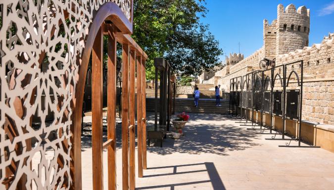 Прогуливаясь по саду, мы пройдем через временной портал и окажемся в Старом городе. Буквально один шаг перенесет нас из Баку 21-го века в Баку века 12-го. Прогуливаясь по узким улочкам старинного города, загляните в сувенирные лавки, где можно приобрести национальную одежду, платки, шарфы и шапки, посуду и ковры ручной работы.