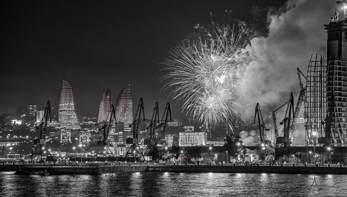 Прогулка по площади Азнефть, украшенной новогодним декором, а также по Приморскому бульвару, где находится главная ёлка страны.