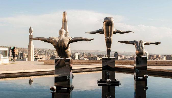 Визитная карточка города - Ереванский Каскад. Грандиозная и уникальная в своем исполнении архитектурная композиция удивит даже самых бывалых туристов. Поднимемся наверх и насладимся видами: отсюда весь город как на ладони! Дальше наш путь пройдет по Театральной площади и Северному проспекту. Познакомимся с причудливой архитектурой Театра оперы и балета: две половинки одного целого в духе советского неоклассицизма смотрятся очень необычно. Увидим памятник любимому народному персонажу горожан - торговцу цветами Карабала. А после прогуляемся по главной площади Армении - площади Республики! С апреля по октябрь ее украшают поющие фонтаны!