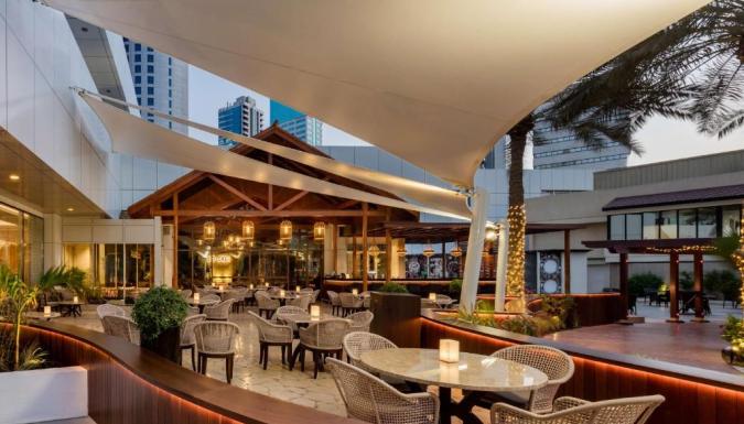 В отеле работают итальянский ресторан Mondo, азиатский ресторан Kontiki и ресторан «шведский стол» Olivos. В баре у бассейна и ирландском пабе Fiddlers Green можно заказать напитки. Во второй половине дня в отеле подают закуски.