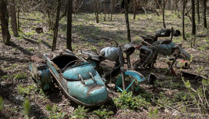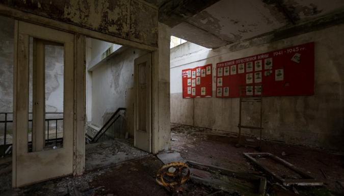 После этого начинается самая интересная часть путешествия — мы въезжаем непосредственно в 30-километровую зону отчуждения и начинаем осматривать заброшенные деревни. Здесь по-настоящему особенная, «сталкерская» атмосфера: в школе до сих пор валяются детские рюкзаки, тетради, счеты и противогазы, в доме культуры пестрят советские агитационные плакаты, а в жилых домах остались печки, мебель и открытые банки с соленьями. На Погонянском канале стоят два заброшенных корабля, возивших баржи из Мозыря в Киев до аварии. Тысячи мелких и крупных объектов быта из прошлого.