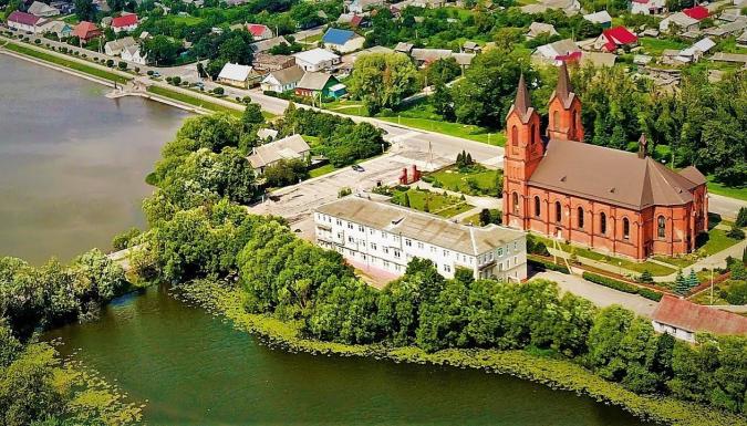 Прежде поселение МИОРЫ называлось по-разному: Меры, Миры, Мир. В переписи ВКЛ за 1567 год упоминается имение Мёры, которое принадлежало шляхетскому роду Мирских. Впоследствии, добавив в свою фамилию имя Святополка, они стали в XIX веке князьями Святополк-Мирскими — владельцами знаменитого ныне Мирского замка. В 1644 году браславский земский судья Севастьян Мирский основал тут православный монастырь, которому в 1680 г. жертвовал свои средства Симеон Полоцкий. Самым колоритным местом в городе сегодня является территория вблизи дороги через дамбу в направлении на Глубокое. Эта озелененная дорога омывается водами озер. Но особенно выразительным и запоминающимся этот район делает костел Вознесения Наисвятейшей Девы Марии, возведенный в 1907 г. в формах неоготики на месте деревянной католической святыни, возникшей тут еще в 1691 году. Он пламенеет краснокирпичной кладкой, вознося свою каменную молитву к небесам. Он хранитель традиций и зеркало истории Миоров! Рядом с костелом недавно поставлен памятник Нерождённому ребенку. А затем — вкусный ОБЕД!