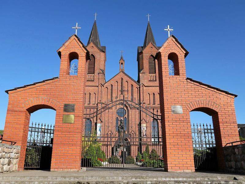 Далее проследуем в Миоры. Прежде МИОРЫ назывались по-разному: Меры, Миры, Мир. В переписи ВКЛ за 1567 год упоминается имение Мёры, которое принадлежало шляхетскому роду Мирских. Впоследствии, добавив в свою фамилию имя Святополка, стали в 19 в. князьями Святополк-Мирскими — владельцами знаменитого ныне Мирского замка. В 1644 году браславский земский судья Севастьян Мирский основал тут православный монастырь, которому в 1680 г. жертвовал свои средства Симеон Полоцкий. Самым колоритным местом в городе сегодня является территория вблизи дороги через дамбу в направлении на Глубокое. Эта озелененная дорога омывается водами озер. Но особенно выразительным и запоминающимся этот район делает костел Вознесения Наисвятейшей Девы Марии, возведенный в 1907 г. в формах неоготики на месте деревянной католической святыни, возникшей тут еще в 1691 году. Он пламенеет краснокирпичной кладкой, вознося свою каменную молитву к небесам. Он хранитель традиций и зеркало истории Миоров! Рядом с костелом недавно поставлен памятник "Нерожденному ребенку". А затем — вкусный ОБЕД!