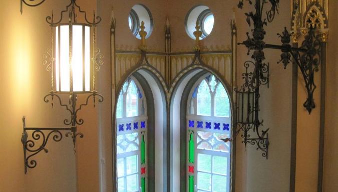 В пути следования Вы познакомитесь с историей многочисленных поселений вблизи дороги. Первая остановка — в старинном местечке КРАСНЫЙ БЕРЕГ, известном с XVI в. Это бывшее имение принадлежало генерал-лейтенанту Гатовскому, при котором в конце XIX века был сооружен небольшой ДВОРЕЦ в стиле неоготики и неоренессанса. Силуэтную выразительность ему придают шатры башен, мансардные крыши, эркеры, остроугольные щипцы, слуховые окна… В 2015 году усадьба открылась после реставрации. Отличительной особенностью дворца является его оформление — каждый зал выполнен в индивидуальном стиле. Множество стилей, начиная от неоготики и заканчивая восточным стилем (замок Альгамбра), придает этому музею нарядность и изящество. Английский парк рядом с дворцом, прочерченный прогулочными дорожками — прекрасное место для отдыха.