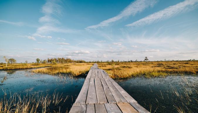 Мы отправимся вглубь Ельни! Длина тропы составляет 1,5 км – это самая длинная и широкая экотропа в Европе, которая ведет через переходное и верховое болота, а также нарушенные участки и грядово-мочажинные комплексы. Вдоль тропы предусмотрены места для отдыха.