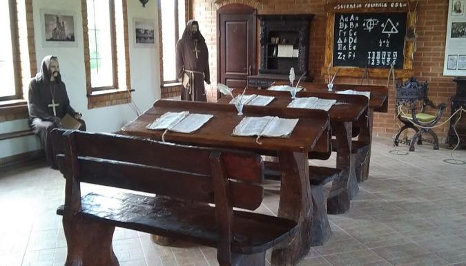 Следующая интерактивная точка — в ярком здании иезуитского КОЛЛЕГИУМА. Здесь экспозиция истории образования на белорусских землях. Здесь Вы узнаете, как учились наши предки и увидите галерею скульптур великих людей белорусской истории — от Льва Сапеги до Максима Богдановича.