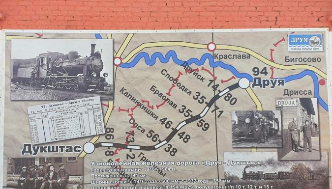 Следующий остановочный пункт в нашем путешествии — агрогородок ДРУЯ. Поселение находится на самом краю Беларуси — оно стоит на левом берегу Западной Двины. А на правом уже виднеется Латвия — деревня Пиедруя на противоположном берегу когда-то была частью поселения, граница по реке появилась с первым разделом Речи Посполитой в 1772 году. Памятным знаком этих событий и сегодня служит ПОГРАНИЧНЫЙ СТОЛБ на берегу Двины. Современная Друя — это тихое местечко, но когда-то оно было видным торговым и ремесленным городком. Поселение впервые упоминается в "Хронике" М.Стыйковского под 1386 г. Однако некоторые историки полагают, что Друя могла возникнуть гораздо раньше, еще во времена Полоцкого княжества. И словно напоминание об этом далеком времени на въезде в поселок нас встречает БОРИСОВ КАМЕНЬ. В начале XVII века часть Друи принадлежала Сапегам, здесь жили почти две тысячи человек, действовали католические, православные, униатские храмы и синагога. Посетим старинную православную БЛАГОВЕЩЕНСКУЮ ЦЕРКОВЬ, познакомимся с КОСТЕЛОМ СВ.ТРОИЦЫ в стиле барокко, узнаем о существовании в Друе первого в белорусской истории монастыря отцов-мариан. Во время войны с Наполеоном в окрестностях произошло несколько важных боев, а во время I Мировой Друя стала прифронтовым городом. Тогда здесь появилась узколейка для военных нужд: Друя — Браслав — Дукштас, ПАМЯТНЫЙ ЗНАК которой увидим на одной из улиц поселка. Прогулявшись по тихим уютным улочкам и насладившись рассказами о богатой истории старинного городка Друи, завершим свое путешествие вдоль Западной Двины...