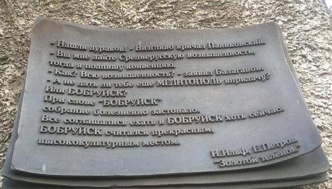 Символом города — исходя из его названия — является бобр. Колоритные СКУЛЬПТУРЫ БОБРА Вы увидите в центре неоднократно; возле них всегда туристы. Еще одной "особенностью" города можно считать цифру "1870" — именно тогда была создана кондитерская фабрика — ныне "Красный пищевик". В свободное время в центре города можно будет не только прогуляться, но и приобрести в фирменных магазинах главный бобруйский талисман — коробочку лучшего в мире ЗЕФИРА… А на счастье и богатство надо потереть золотого теленка в руках у Шуры Балаганова — в городе установлен памятник этому герою романа Ильфа и Петрова. ОБЕД.