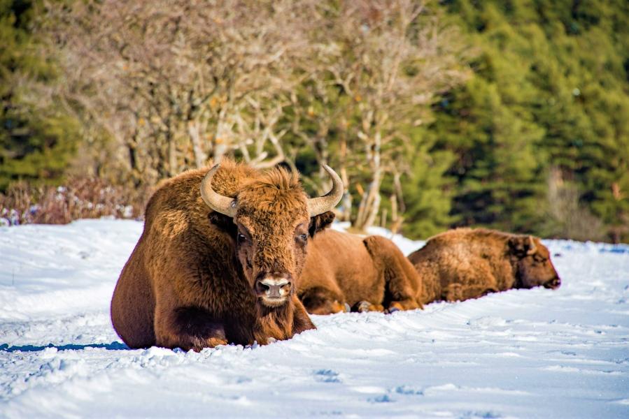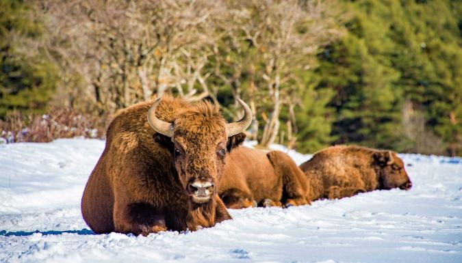 А затем — посещение праздничного ПОМЕСТЬЯ ДЕДА МОРОЗА, сказочной усадьбы с многочисленными постройками и сюрпризами. Поместье расположено в глубине Беловежской пущи, его площадь составляет 15 га. Избушки Деда Мороза и Снегурочки, хранилище подарков "Скарбница", волшебная мельница, многочисленные световые инсталляции, деревянные скульптуры, мостик желаний — новогоднее настроение гарантировано! Вас ожидает общение со сказочными героями, символами новогоднего торжества. Заряжаемся позитивом и веселимся! Здесь есть и поляна "Двенадцать месяцев": выбери свой, сфотографируйся и загадай первое желание — проверено, сбудется. Кроме того, на территории резиденции установлены скульптурные группы по мотивам известных сказок. Дед Мороз поприветствует Вас на пороге своей сказочной Резиденции — и обязательно каждый получит ПОДАРОК. Здесь интересно всем — и взрослым, и детям! Поместье расположено в магическом месте — бывшем зубропитомнике. Часто зимой целые стада зубров можно увидеть на близком расстоянии, у кормушек. По старой памяти они приходят подкрепиться и… порадовать туристов.