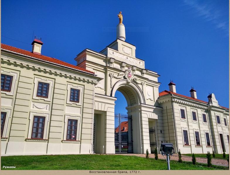 РУЖАНЫ — древний город, известный с 1490 года. Прошлое Ружан неотделимо от родословной Сапег, к которым это имение перешло в конце XVI в. и находилось в их владении более двух столетий. Подобно розе, Ружаны расцвели при канцлере ВКЛ Льве Сапеге. Он заложил тут двухэтажный, с тремя башнями замок. ЭКСКУРСИЯ ПО ТЕРРИТОРИИ ЗАМКА. Здесь принимали королей, князей церкви, послов, иностранных вельмож… Здесь вершилась большая политика с ее замысловатыми пасьянсами. В конце XVIII ст. благодаря таланту архитектора Иоганна Самуэля Беккера замок был превращен в роскошную дворцово-замковую резиденцию. Близкая к овалу, пространственно развитая композиция княжеской резиденции, вознесенной на пригорок, цельно и величаво отразила дух своей эпохи. Непоправимый урон ансамблю нанесла Вторая мировая война. Однако благодаря уцелевшим в архивах чертежам Беккера восстановление родового гнезда Сапег уже начато: в обновленных флигелях замковой брамы открыта МУЗЕЙНАЯ ЭКСПОЗИЦИЯ, посвященная роду Сапег. В самом поселке сохранилось несколько памятников. Это Троицкий костел (1615), бывший базилианский монастырь (1788) и Петро-Павловская церковь (1778). А затем — вкусный ОБЕД.