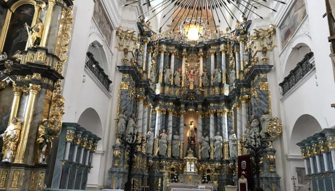 Обзорная автобусно-пешеходная ЭКСКУРСИЯ ПО ГРОДНО, которая познакомит Вас с памятниками города-музея. В прошлом город выполнял роль столицы Речи Посполитой, с ним связаны судьбоносные события нашей истории. В историко-культурном наследии Гродно ведущую роль играют замечательные архитектурные ансамбли различных эпох и стилей. Постройки гродненской архитектурной школы XII в. соседствуют со зданиями модернистов и конструктивистов XX в. А кроме того, готика, ренессанс, зрелое барокко и строгий классицизм… На улицах, расходящихся во все стороны от бывшей Рыночной площади, сохранились многочисленные монастыри — католические (бригитский, францисканский) и православный Рождества Богородицы. В Гродно находится самая старая церковь Беларуси — КОЛОЖСКАЯ, построенная еще в XII в. на высоком берегу Немана; посещение церкви с изумительной изюмной кладкой. Осмотрим также древний БЕРНАРДИНСКИЙ МОНАСТЫРЬ; посетим изящный костел Отыскания святого Креста 1602 года постройки. Самый монументальный и изысканный гродненский костел — ФАРНЫЙ (1703 г.) поражает величием фасада и скульптурным богатством интерьера; посещение костела с уникальным алтарем. Яркий облик главного православного храма — Свято-Покровского собора — оставляет сильное впечатление. Примечательны также особняки знати и рядовая гражданская застройка города. Изогнутые улочки, "человеческий" масштаб в архитектуре, живописный рельеф делают исторический центр Гродно непревзойденным! ОБЕД в колоритном ресторане. Продолжение знакомства с городом-музеем: Гродно — город интернациональный, в прежние века значительную его часть составляло еврейское население. Посещение величественной СИНАГОГИ, тщательно отреставрированной и имеющей великолепный белоснежный интерьер; экскурсия по синагоге.