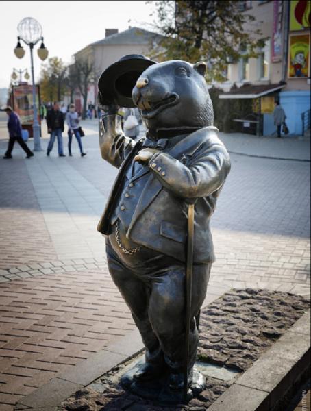 Символом города — исходя из его названия — является бобр. Колоритные СКУЛЬПТУРЫ БОБРА Вы увидите в центре неоднократно; возле них всегда туристы. Еще одной "особенностью" города можно считать цифру "1870" — именно тогда была создана кондитерская фабрика — ныне "Красный пищевик". В свободное время в центре города можно будет не только прогуляться, но и приобрести в фирменных магазинах главный бобруйский талисман — коробочку лучшего в мире ЗЕФИРА… А на счастье и богатство надо потереть золотого теленка в руках у Шуры Балаганова — в городе установлен памятник этому герою романа Ильфа и Петрова. ОБЕД.