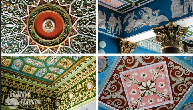 А затем — переезд в ЖИЛИЧИ, посещение дворцово-паркового ансамбля Булгаков. Решенный в стиле классицизма обширный дворец является ярким представителем усадебной архитектуры Беларуси XVIII-XIX вв. Строительство дворца началось в 1825 году по заказу Игнатия Булгака, автор проекта — архитектор Кароль Подчашинский. ЭКСКУРСИЯ ПО ДВОРЦУ. Главный корпус в плане П-образный, в центре портик с колоннами коринфского ордера и башня-бельведер. После недавней реставрации парадные залы, жилые помещения, большие и малые залы вернули первоначальную роскошь. Нарядная строгость и симметрия характеризуют убранство дворца. Обращают на себя внимание сохранившиеся кессонные потолки в изящной лепнине — их разнообразие поражает! Лепные украшения и орнаменты в некоторых комнатах присутствуют и на стенах. Здание дворца выдержано в едином классическом стиле — здесь присутствуют все характерные его детали: портики, арки, колонны…